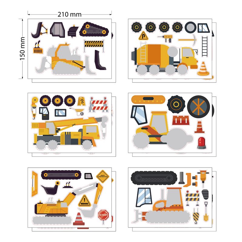- Super Value Pack: You will receive 24 sheets Make Your Own Construction Stickers in 6 different styles. 8.27''×5.9'' per sheet. Large size makes it easier for kids to operate.