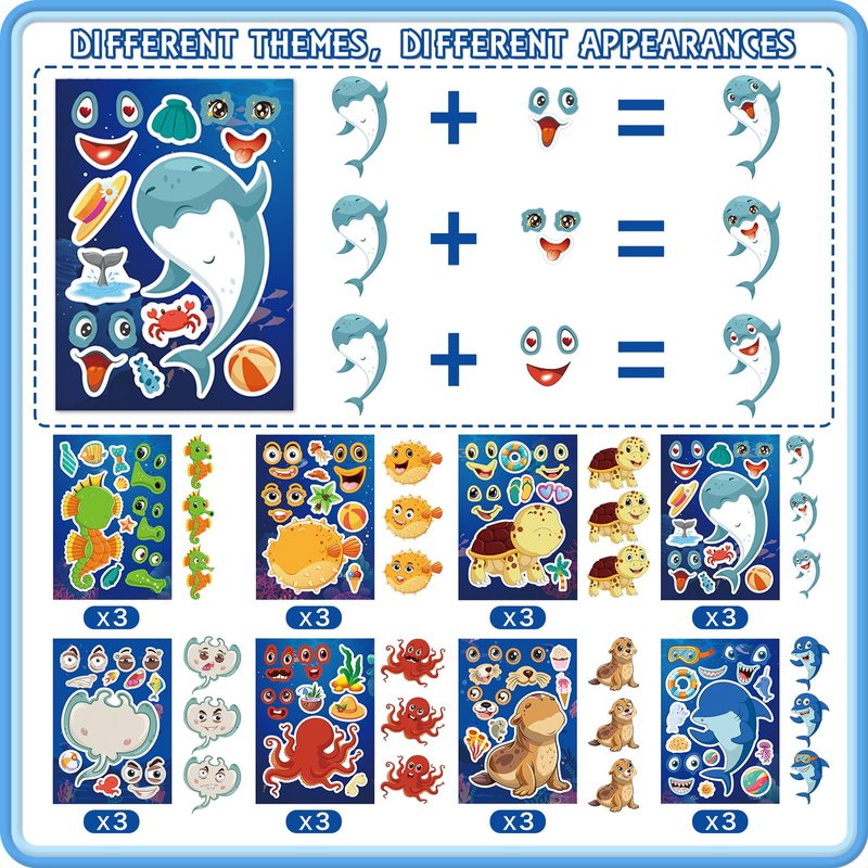 - Widely Used: Ocean Animal make-a-face sticker can be applied to gift boxes, laptops, books, cups, refrigerators, and other surfaces as decorations to add a festive atmosphere.