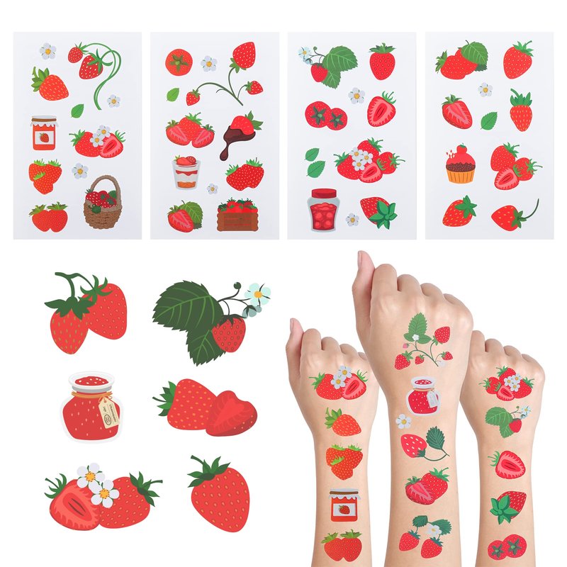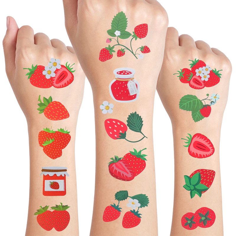 24 Sheets Strawberry Temporary Tattoos, Birthday Decorations Strawberry Party Favors