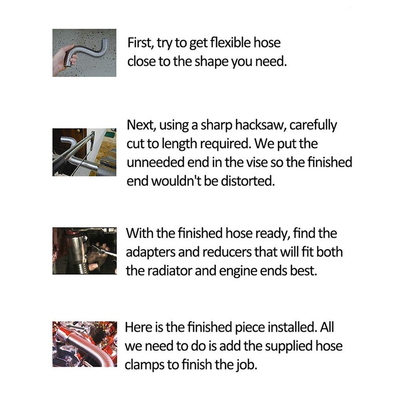 Flexible design eliminates the hassle of finding a rubber hose with just the right bends plus stainless steel hose will not fall apart or rot out like a rubber hose