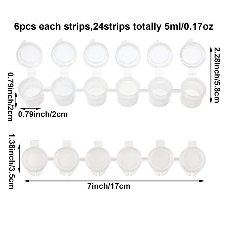 - Package content: you will get 24 strips of empty paint cup pots in this package, 6 pots for each strip, totally 144 pots in 1 package for you, each pot is about 5 ml/ 0.17 ounces in capacity, sufficient quantity can satisfy your diversified needs