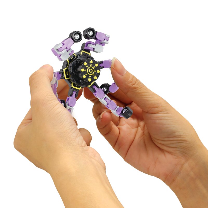 Each fidget spinner has six deformable chains. Each of the links can pivot and lock into 5 positions, you can create any shapes you want, such as various shapes of spinners, robots and even mobile phone holders. It can also exercise your kid’s hands-on ability, hand-eye coordination and logical thinking ability by changing the shape of the toys.