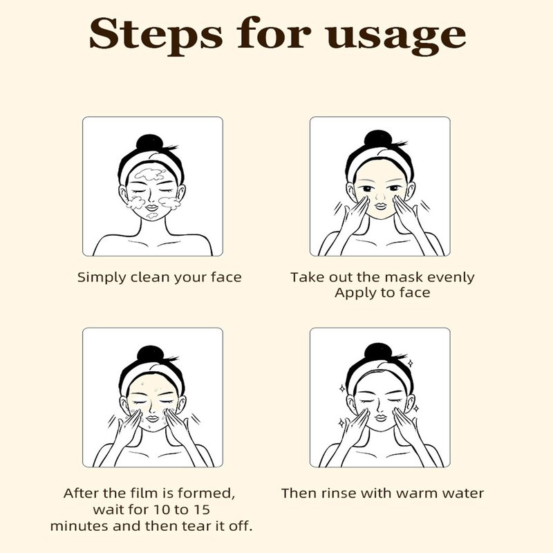 - 【Easy To Use】After cleansing the skin, apply appropriate amount of mask on the face, avoid eyes and eyebrows,wait for 20-30 minutes, and after it dries out, gently peel it from top to bottom.afterward Apply your daily skincare products.