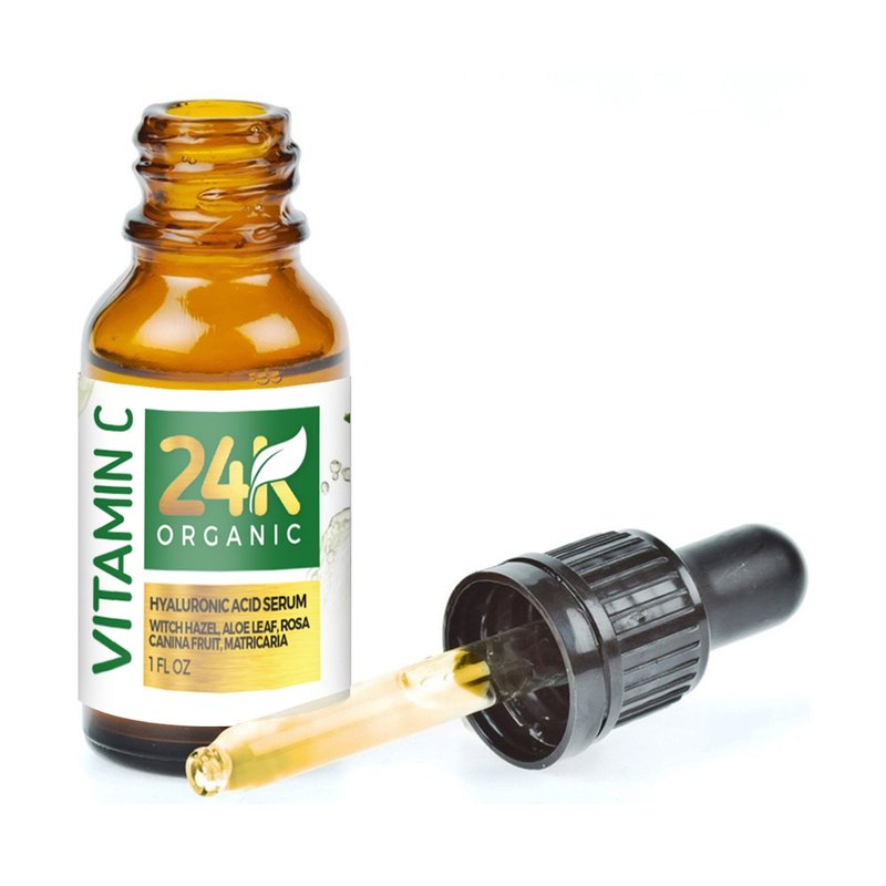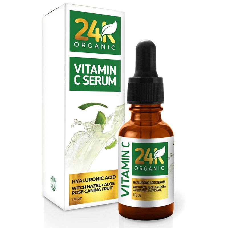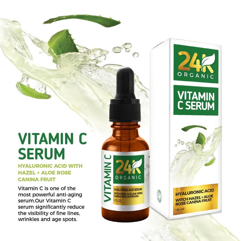 24K Vitamin C Serum for Face, Anti-Aging Topical Facial Serum with Hyaluronic Acid And Aloe Leaf, 1 fl oz