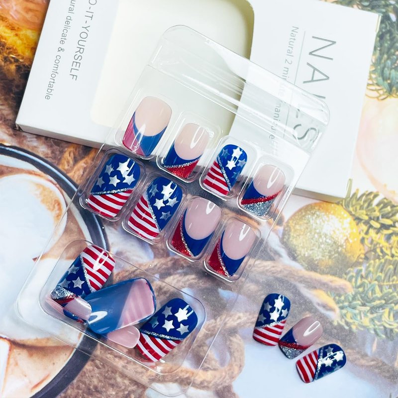 - 【Widely used】4th of July nails glue on nails supplies suitable for various social occasions great for nails salon,DIY home nails art. Perfect to be used on prom, party, and they also suitable for Independence Memorial Day, Christmas Day and other festival.It is given the perfect gift for partners, family, friends.