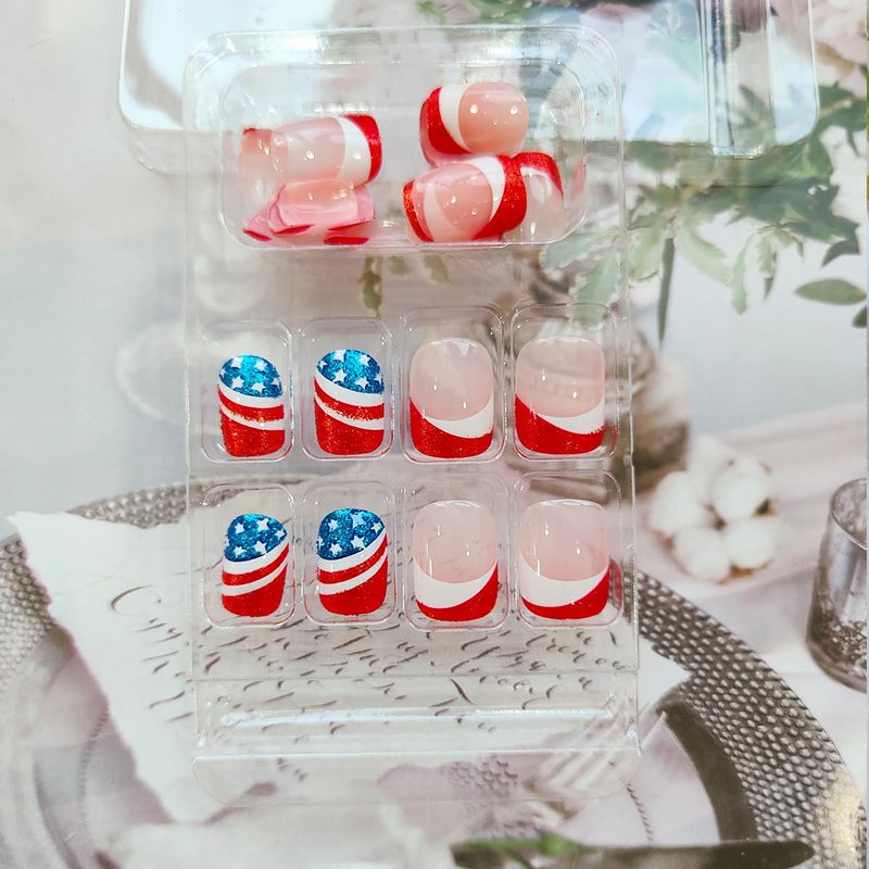 - Easy to Use: Just choose the nail piece that suits you, polish the nail bed, paste the jelly glue we give away, and press trendy nails for 30s to get the independence day manicure decoration that girls like.