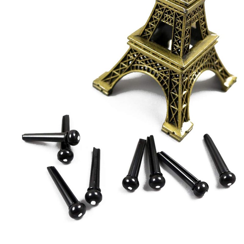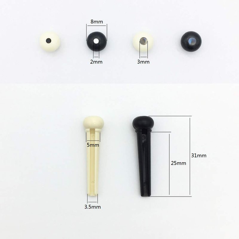 - Guitar bridge pins-Comes with 24 pieces guitar pins (12pcs black guitar pins + 12pcs ivory guitar pins, made of ABS), fits for most acoustic guitars and great replacements for your old or damage guitars.