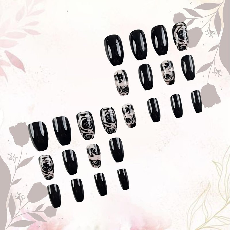 - Comfortable to Use:Black rose artificial Nails suitable for nail salons and DIY nail art at home, wonderful gift for your wife, girlfriend, mother or sisters, and excellent for parties/wedding/costume ball.