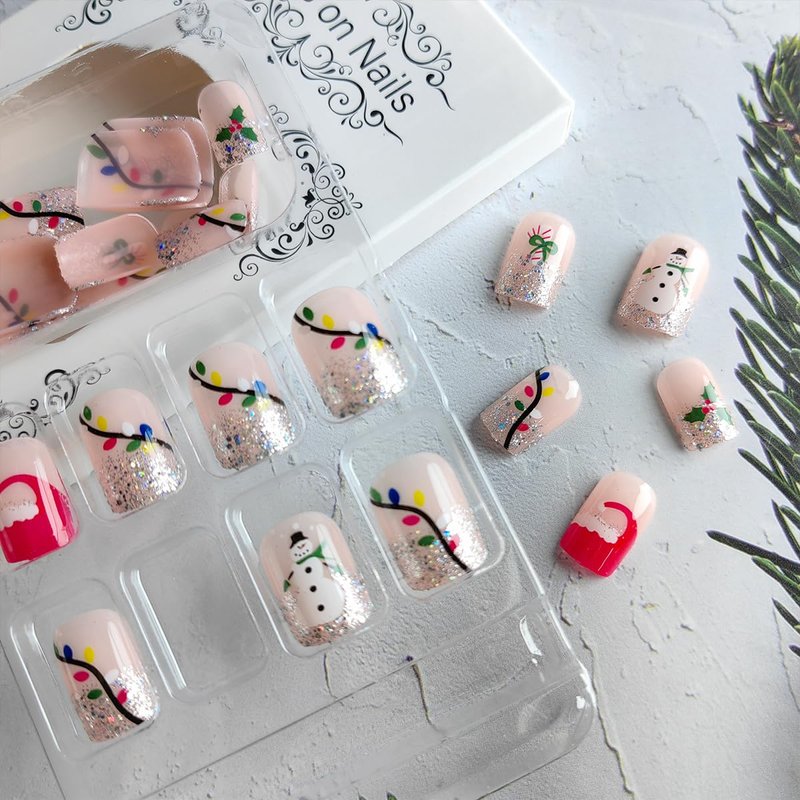 - Convenience: Xmas fake nails can help you save time while decorating your nails better. Change your favorite nail design anytime, just a few minutes, you can use nail glue to stick these Snowmen acrylic nails onto your nails