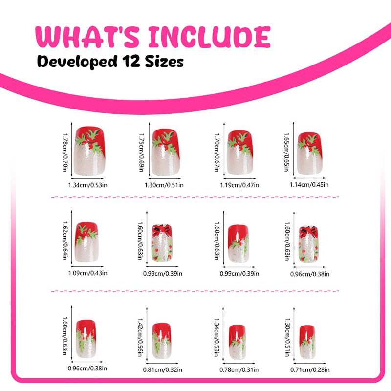 - Cute Christmas Press on Nails: Beautiful and short square press on nails french tip false nails comes with has 12 different sizes, you can choose them to be polished to the most suitable size, it fits any finger perfectly. Create your own winter Xmas style.