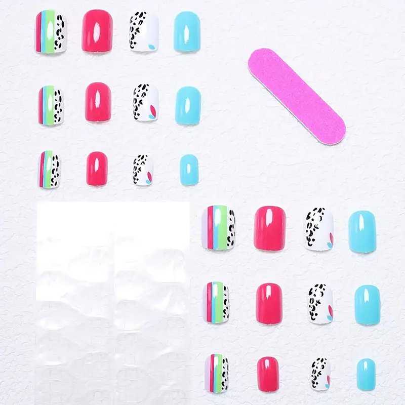 Package Includes: 24 pcs press on nails. 24 pcs nail double-side stickers. 1 pcs mini nail file. 1 pcs alcohol cotton. 1 pcs wooden stick.