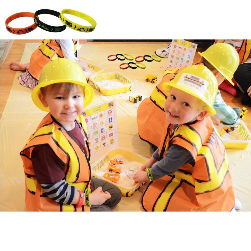 - 24 Pack of Construction Silicone Bracelets are just what you looking for.