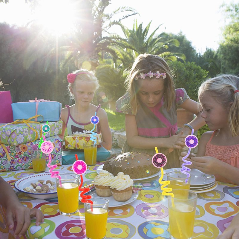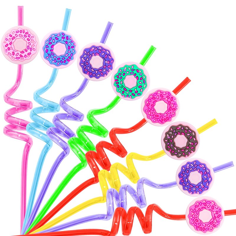 24Pcs Donut Party Straws for Donut Party Favors, Donut Themed Party Reusable Straws for Kids Donut Party Supplies