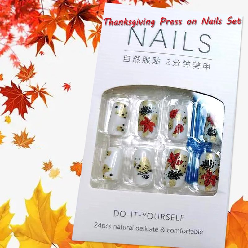 - Fall Manicure: 1 box contains 24 Thanksgiving fake nails, a nail file and 24 jelly glues, the fake nails are divided into 12 different sizes, it is convenient for you to choose the holiday fake nails that suit your nail.