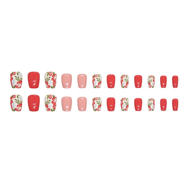 - Flowers Nails Kit : 24 PCS ,12 different sizes of spring press on nails, 24 * jelly glue, 1 * nail file, 1 * wooden stick. Help you wear these short square fake nails better. A full range of tools meet all your wearing needs. It can be worn repeatedly so that you can replace it at any time, and it can better protect your nails.
