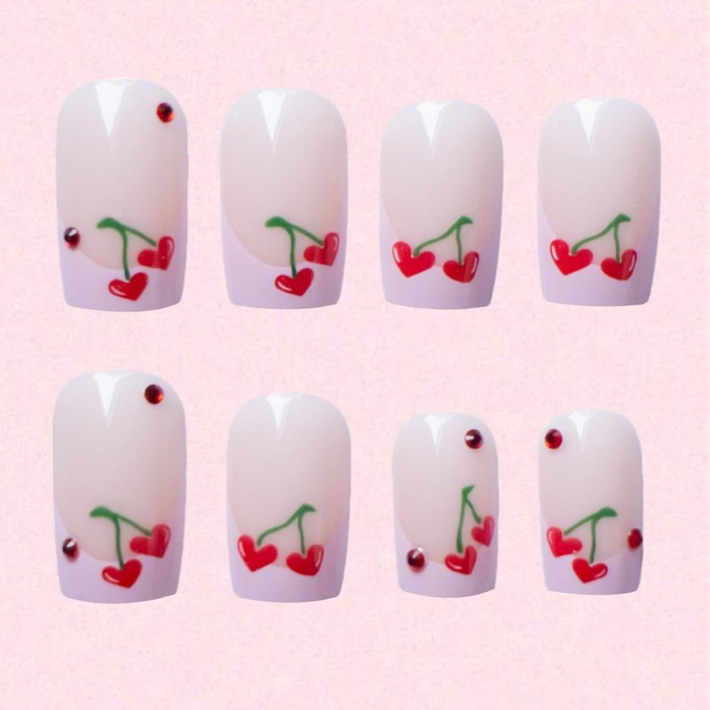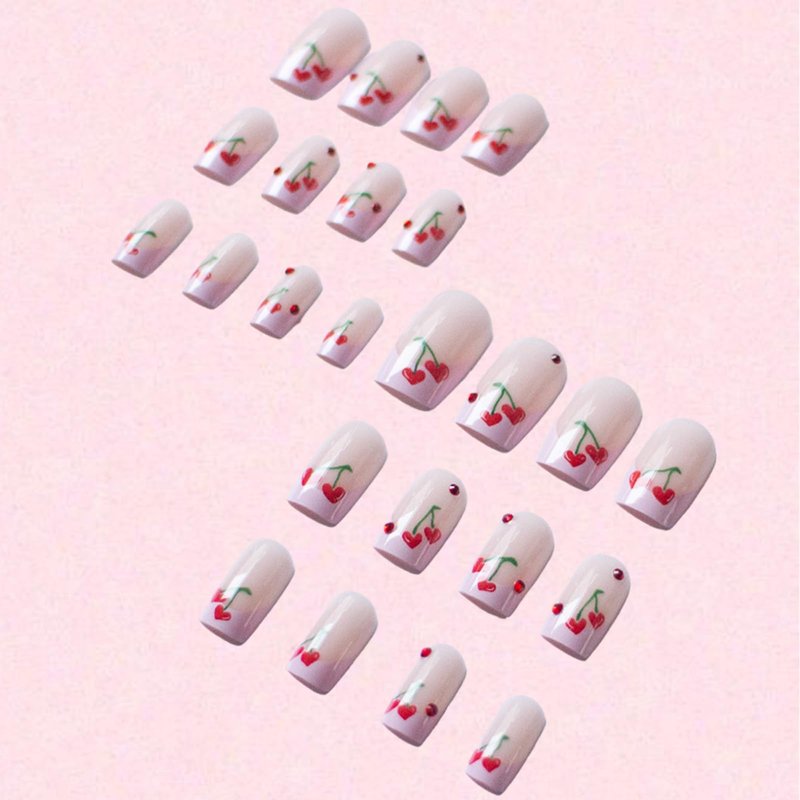 - Enduring Effect: You can use the nail glue sticker we give away ( use nail glue sticker, cherry fake nails can be reused ), but the nail glue sticker is not as good as liquid glue, if you want to last longer, please use liquid glue, the effect can last 1 to 2 weeks.