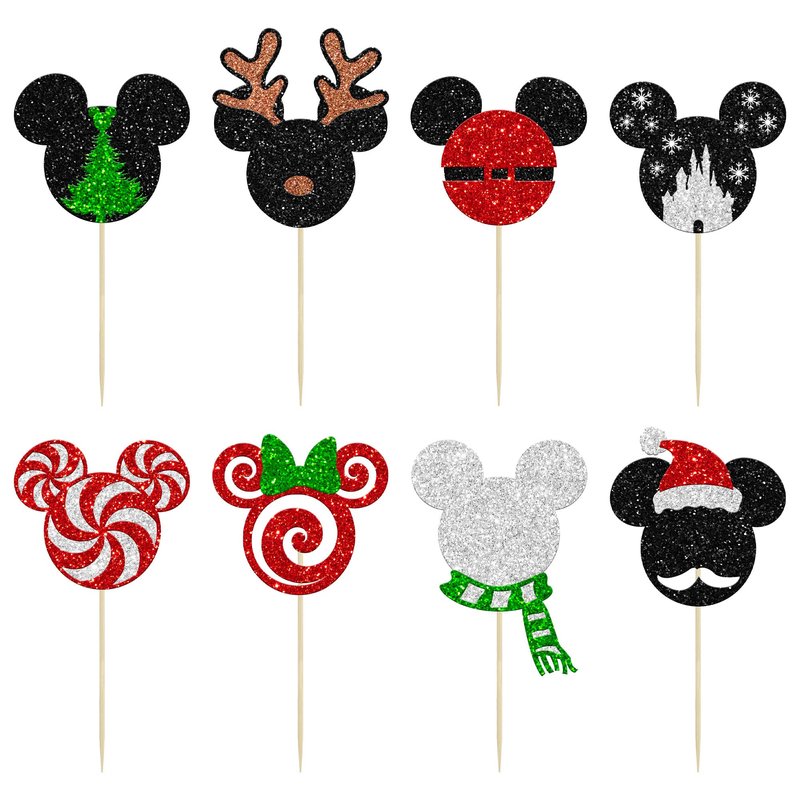 - 🍰【Upgrade Quality】: 24Pcs Christmas Mini Mouse Cupcake Toppers are made of 300 gram glitter card stock and 100% food grade bamboo stick, not easy to deform and fade, smooth edges without burrs, makes these Christmas One Cupcake Toppers give you a wonderful visual enjoyment. It is durable enough for long lasting use.