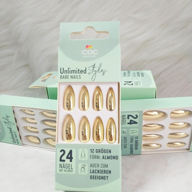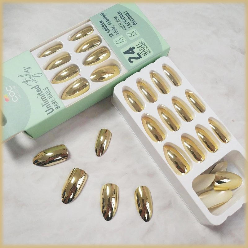 - 【Press on Finger Nails Easy to Use】Instead of spend lots time and money at nail salon, you can change you nails style in 15 min anytime and anywhere.(The gold fake nails will stay longer if you clean your nails before use, and avoid water within the first hour of wearing)
