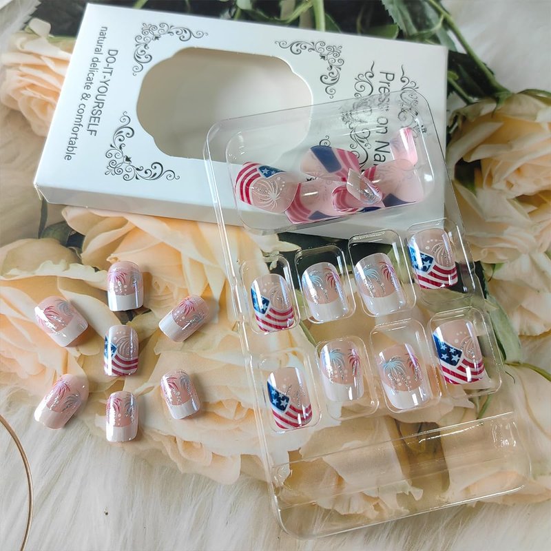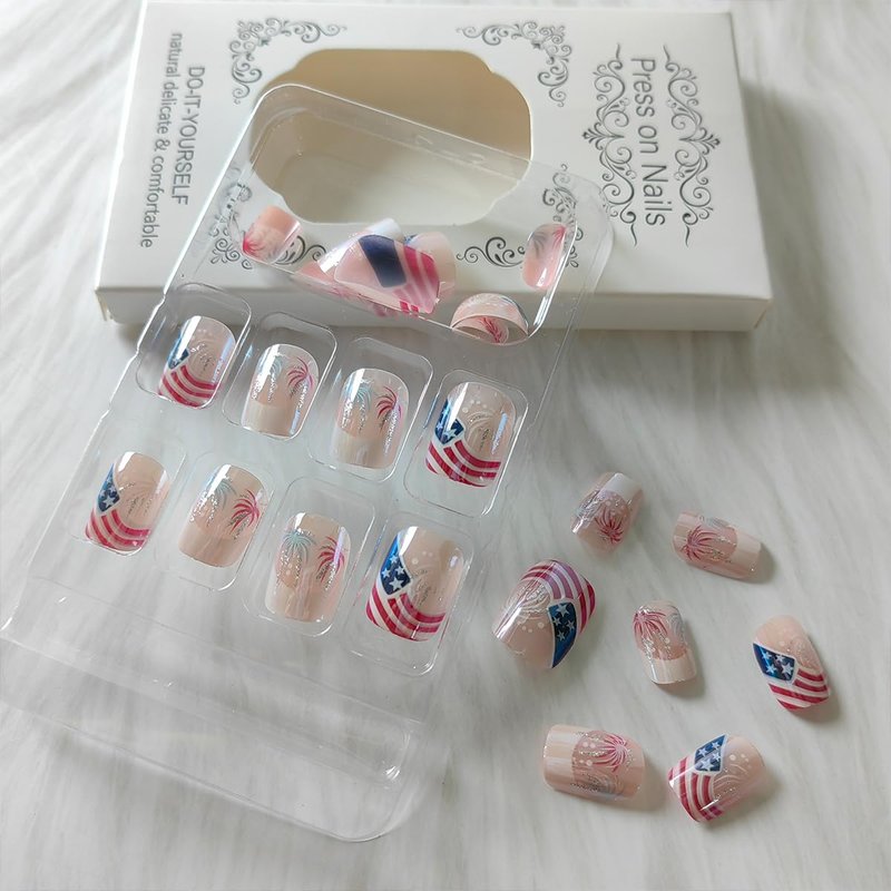 - 【Service Guarantee】Strives to bring you the quality independence day fake nails short nails set.Please feel free to contact with us if had any questions, we will try our best to solve your problem and satisfy you. Please email us if you received wrong item.