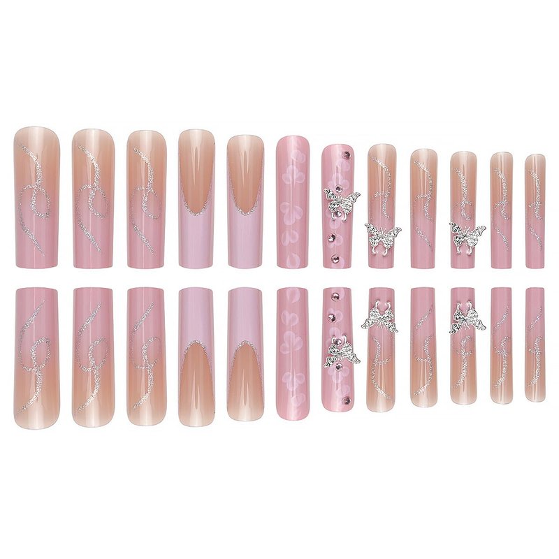 Pink Press on Nails Long Coffin Fake Nails with Nail Glue Exquisite Design for Women Nail Art Set
