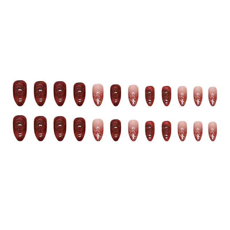 - Package Contains: Our almond press on nails designs red false nails is exquisite and beautiful. It contains 24 pcs short fake nails and a set of DIY nail art tools. There are 12 different sizes of fake nails. You can choose the most suitable short fake nails for yourself.