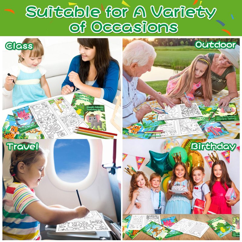 - Super Value Bulk Coloring Books: You will get 24 pieces of safari animals coloring books in 8 styles, 3 pieces for each kind. Each coloring book is printed with 12 varying pictures. Double-sided printed. The kids coloring books have a total of 96 jungle animal patterns, the quantity is enough to meet your DIY needs and let your kids play all day long