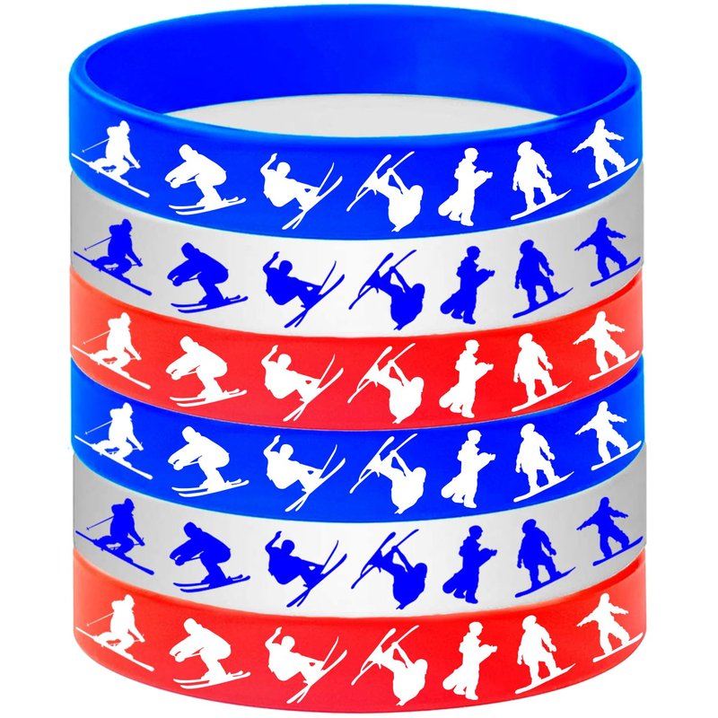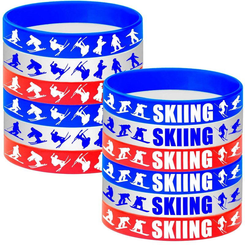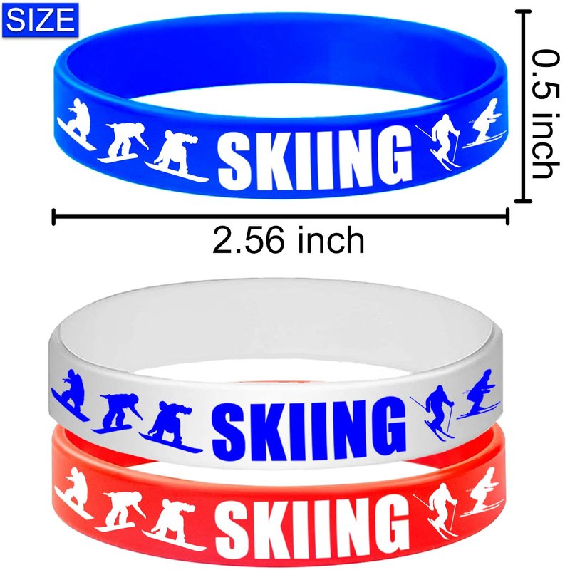 - Ski silicone bracelet set: 24pcs ski themed rubber Bbracelets, three color styles, black, white, red, 8pcs each, enough quantity to decorate a party.