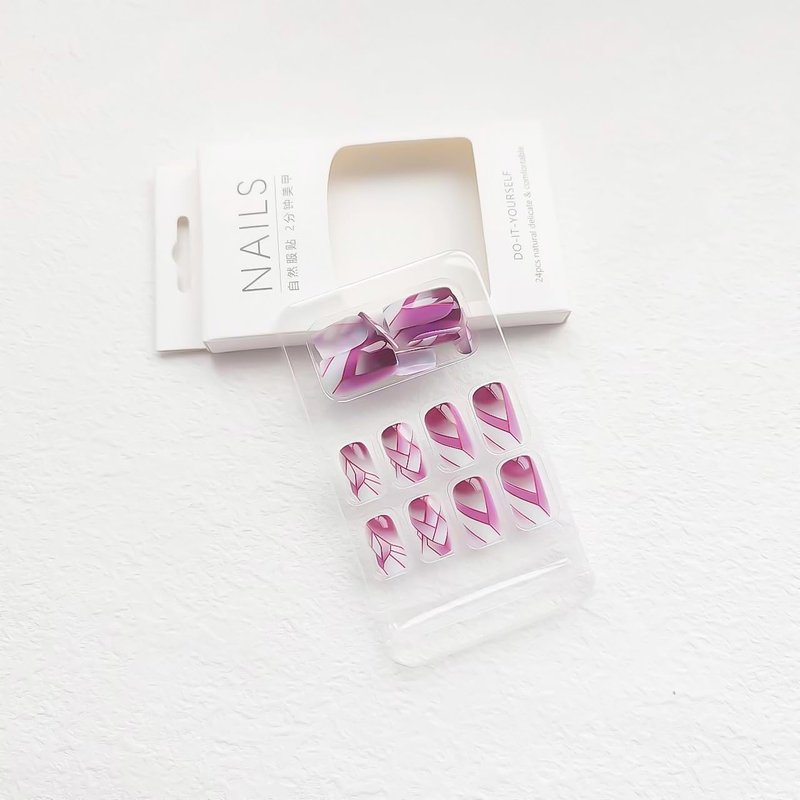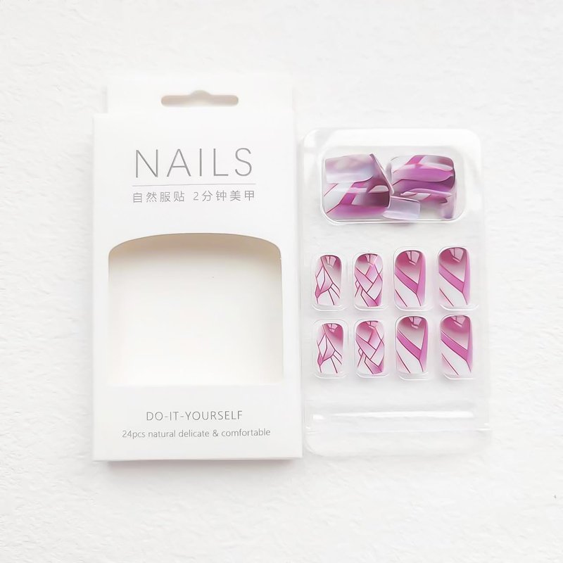 - 【Fake Nails Package】24 Pcs square press on nails & a nail file & jelly glue stickers.(Durability of jelly glue is NOT as good as liquid glue, but it makes fake nails reusable. Please use suitable glue according to different scenes)
