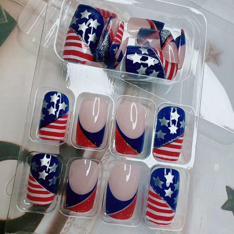 - Widely used: 4th of July acrylic short fake nails suitable for various social occasions great for nails salon,DIY home nails art.Perfect to be used on wedding ,prom ,dating, and they also suitable for Valentine's, Halloween, Christmas Day and other festival.It is given the perfect gift for partners, family, friends.