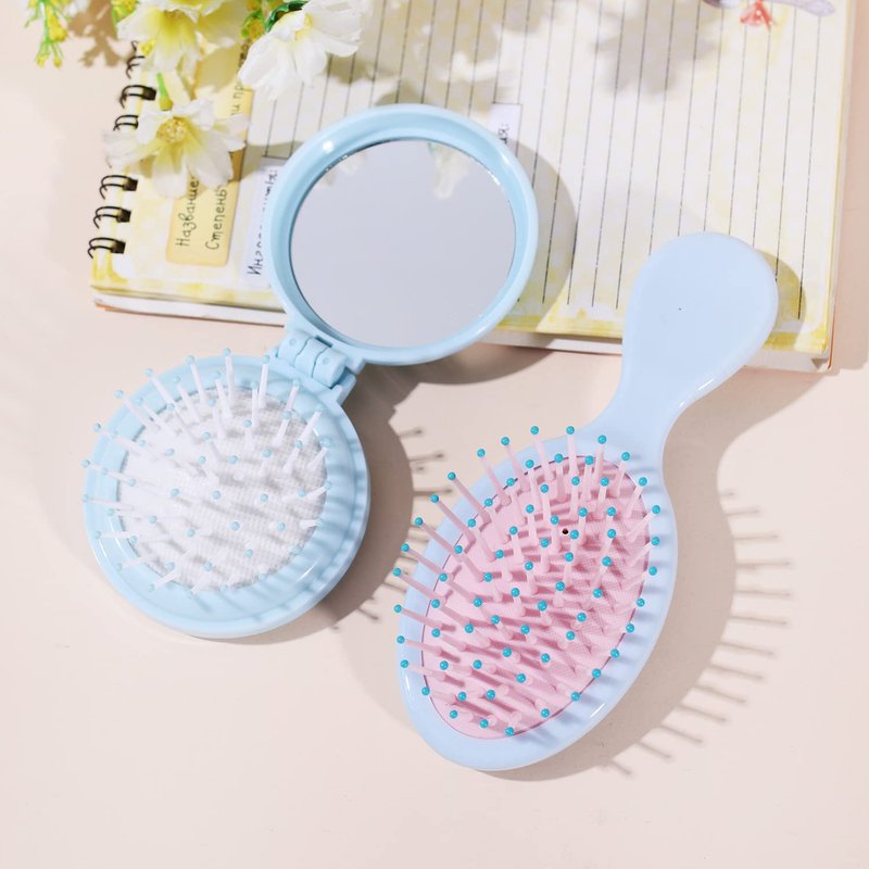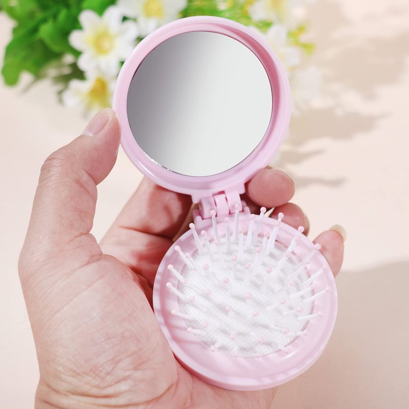 - 【Feature】Keep your hair adopting soft air cushion teeth,our folding small portable mirror brush travel will not tear or pull out tangles and can easily slide through your hair,gently removing tangles and taking some of the pressure off your scalp.