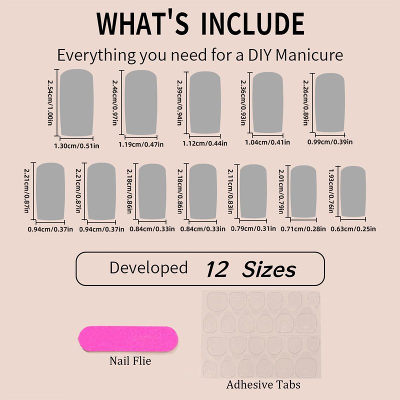 - Chrome French Tips Press on Nails - Packaged with 24pcs cute fake nails, 24pcs jelly glue stickers, 1pc nail file, 1pc wooden stick. 12 sizes fake nails can repeated use, suitable for different size of nails.