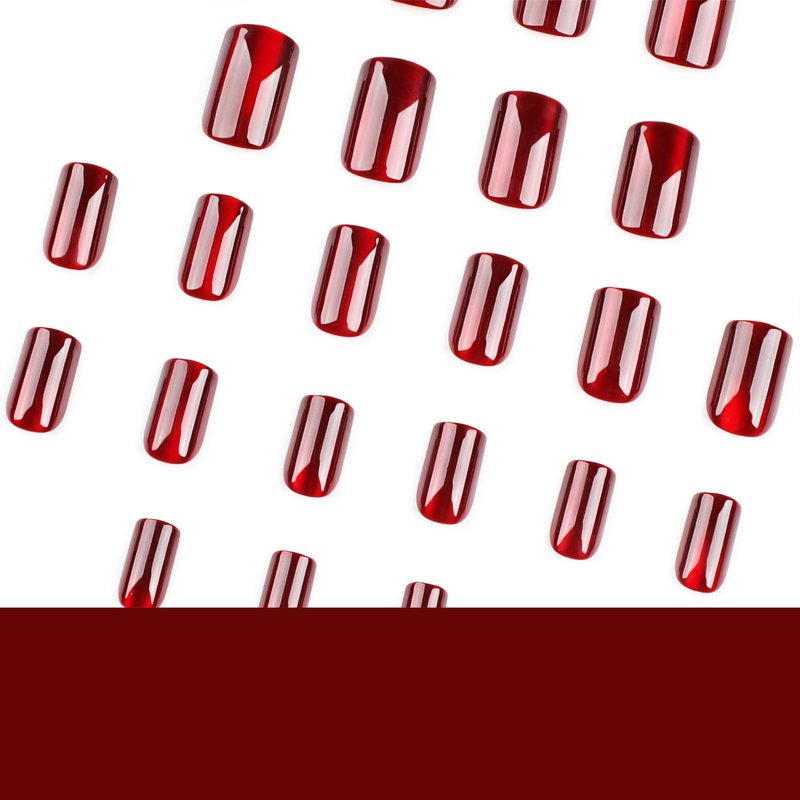 24Pcs Wine Red Press on Nails Cat Eye Fake Nails Medium Square Fake Nails with Glitter & Gradient Designs Glossy Acrylic Nails for Women and Girls Full Cover Stick on Nails for Women and Girls