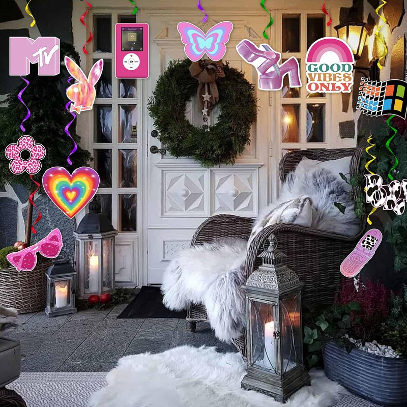 12Pcs Y2k 2000s Pink Party Swirl Decorations Hanging Spiral Decor Features: Made of good quality cardstock material, strong and light, double sided printed Y2k swirl decorations contain 2000s pink party, 12pcs spiral decor, good for party or daily decoration.ceiling Ideal for birthday party, baby shower, Female bachelor party, outdoor garden party, photo booth props and so on. Package: 1 Bag x Y2k 12 Spiral Decor Set
