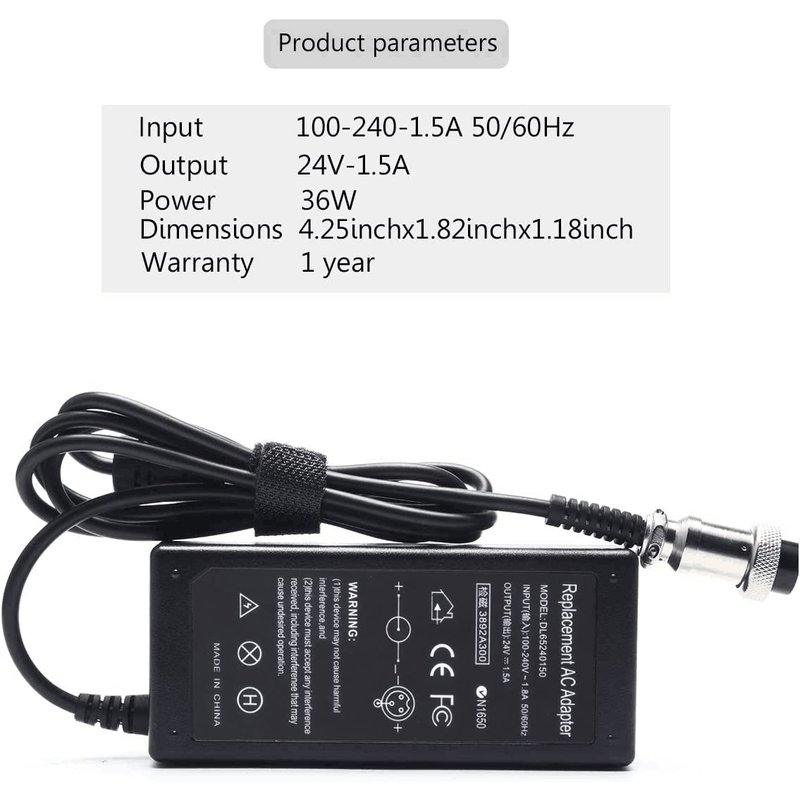 24V 1.5A 36W Electric Scooter E100 E200 E300 Battery Charger Standard 3-Prong Inline for Razor E100 E200 E300 E125 E150 E500 E175 PR200,MX350 E225S E325S, Pocket Mod, Sports Mod, and Dirt Quad