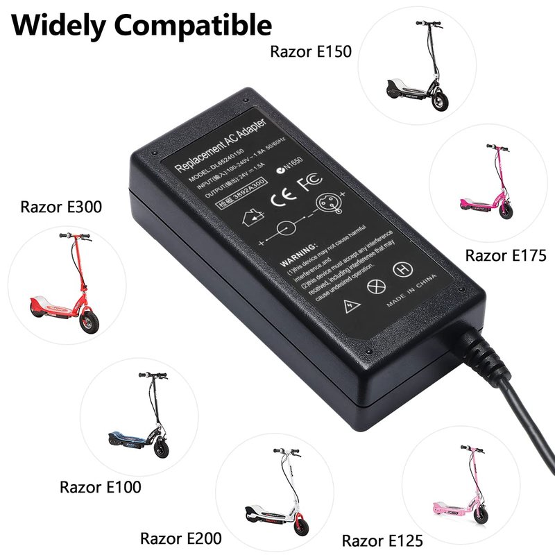 - Compatible Models: Razor E100 E200 E300 E125 E150 E500 E175 PR200 MX350 MX400 ZR350 Electric Scooter Battery Charger; Ground Force; Mini Chopper; Pocket Rocket; Pocket Mod; Sports Mod and Dirt Quad; Electric Go Kart;