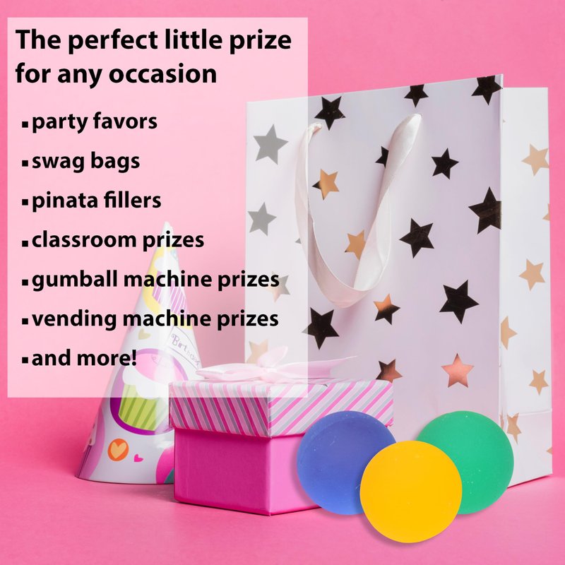 - VERSATILE - Perfect for a multitude of purposes including games like bounce-offs, party bag filler, party favors, classroom prizes, vending machines, carnival game prizes and even pinata filler and stuffers.