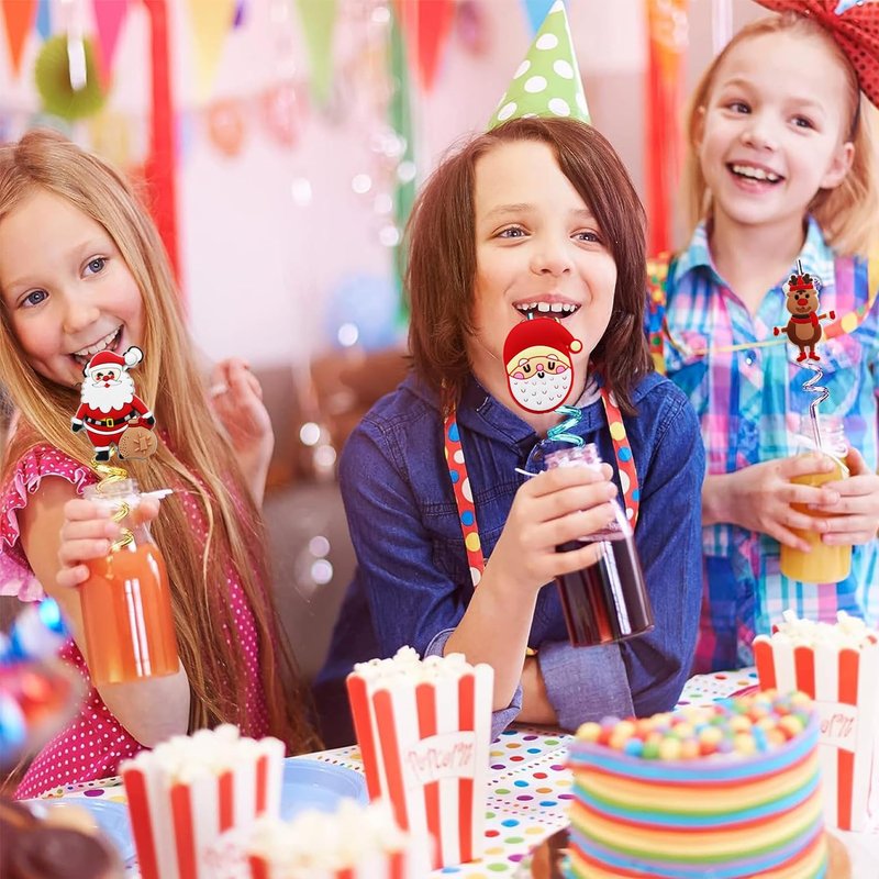- Removable Ornaments Xmas Straws: These fun straws for kids are equipped with detachable Christmas themed characters, no glue or any tools needed, kids can slide up and down to adjust the cartoon patterned, or remove the ornament to use as simple curly straws. DIY your drinking straws, increase the recognition of your drink, add color to your party.