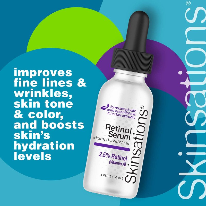 2.5% Retinol Serum with Hyaluronic Acid - Skinsations | Natural Daily Moisturizer with Organic Botanical Extracts | Aloe, Vitamin E, Green Tea, Witch Hazel
