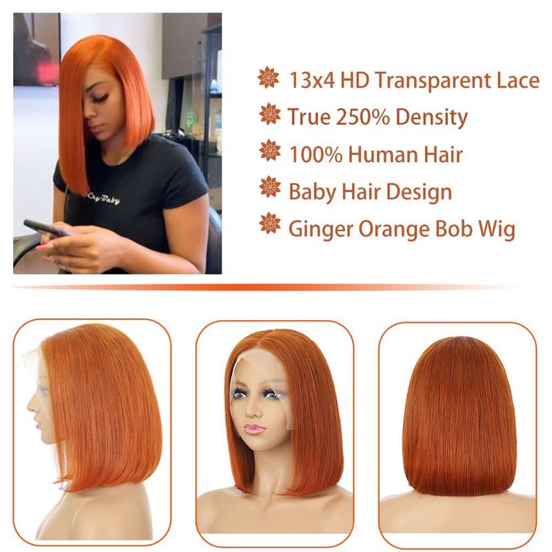 - Color: 13x4 350 Ginger Bob Wig