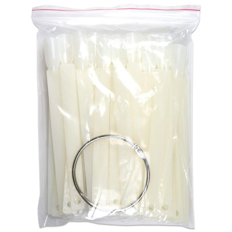 5 Sets comes with 5 ring holders! Only Order from Beauticom to ensure you will receive exactly the same product as shown in pictures! Color: Natural Qty: 5 sets of 50 tips, 250 tips in total Each Tip measures: 12.7 x 1.0 cm 100% Brand New and High Quality It can used as practice fan board for beginners or nail art display chart for advanced users Suitable for professional use or practice at home.