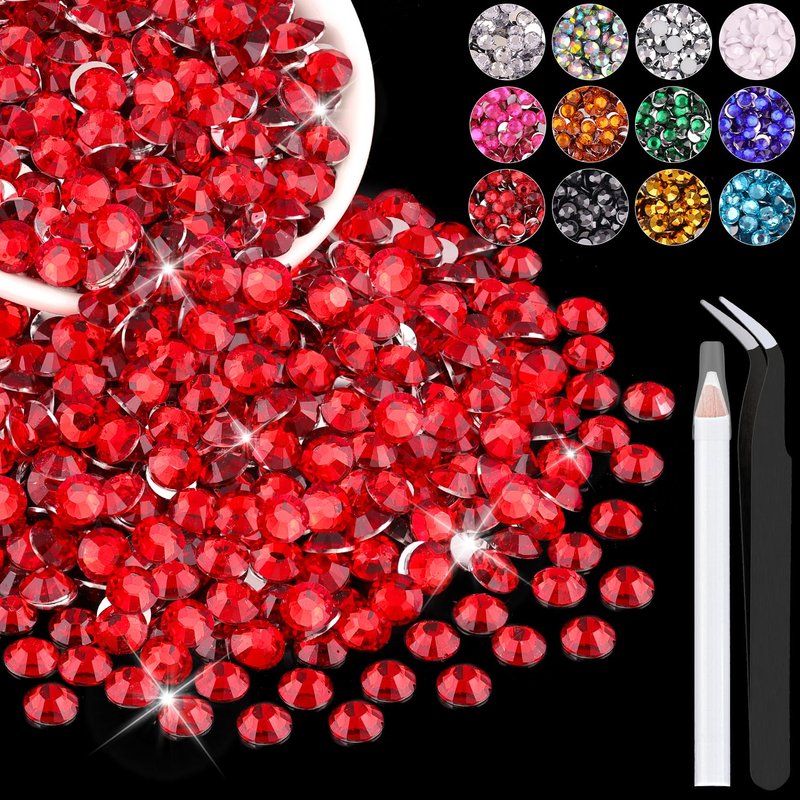 - 💎PACKAGE CONTENT -- The package contains approx. 2500 pcs of 5mm-SS20 (0.20") bling-out resin rhinestones (Red). The large amount will support you to fulfill a number of your wonderful DIY decoration ideas. Additionally, 1 tweezers and 1 pickup pen are included for easily picking up of glittering gems.
