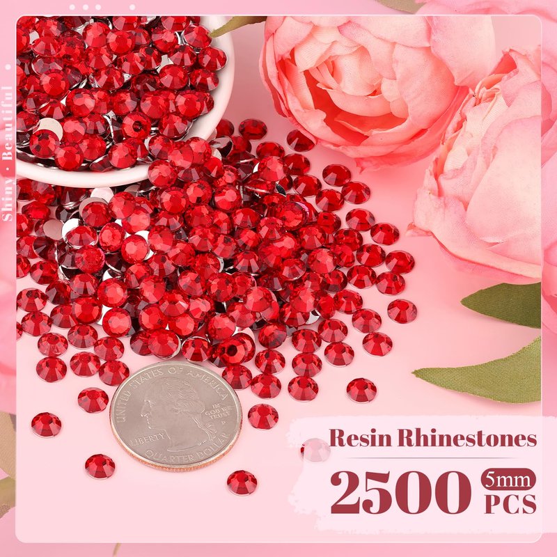 2500PCS 5mm Resin Rhinestones in Bulk (Red), Bedazzling Flatback Crystals for Crafts DIY Nail Decoration, Gems Charms for Tumbler Shoes Clothing Fabric with Pickup Pen and Tweezers