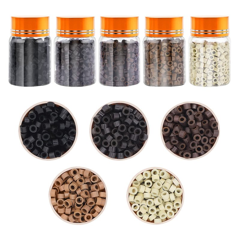 - What you get: 2500 silicone extension beads for hair extension, 5 colors (black,dark brown,light brown,dark gold,light gold), 500 per color.