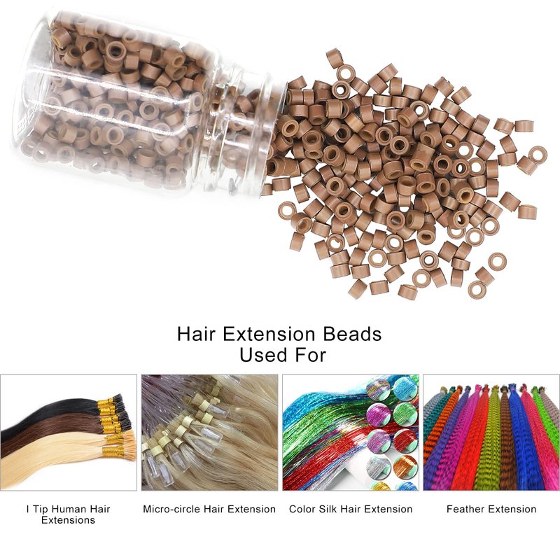 2500pcs Hair Extensions Beads Micro Links Rings Beads,5mm Silicone Lined Beads for I Tip Extend Human Hair
