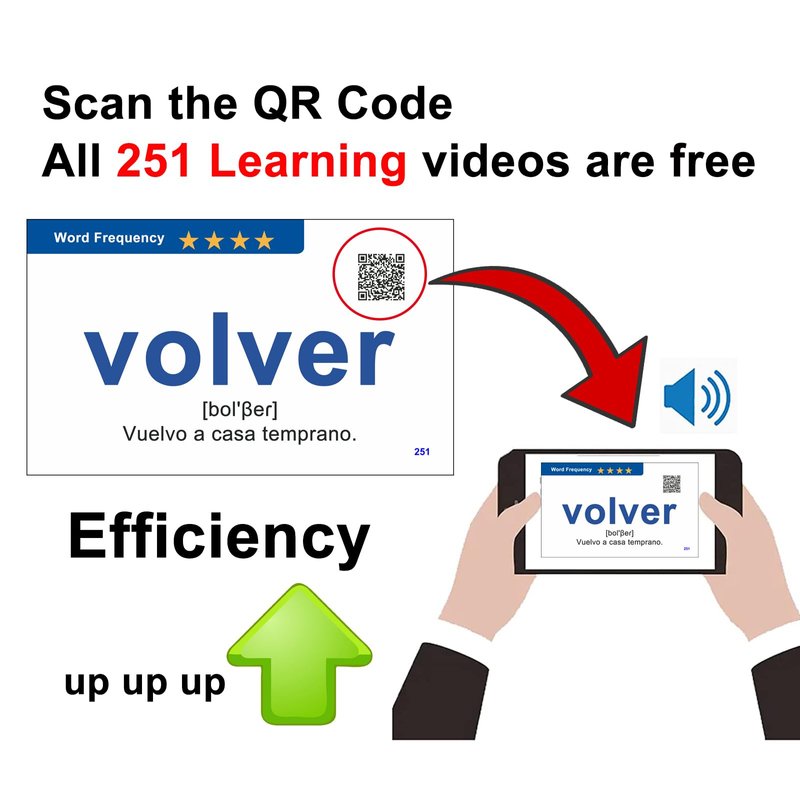 - [251 free learning videos]: These videos enhance your Spanish pronunciation by providing standard audio. Simply scan the QR codes on the Spanish flashcards to listen to the pronunciation of corresponding words, making your learning more efficient and accurate.