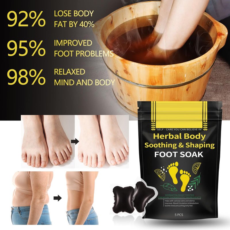 - [Herbal detox cleansing foot soak beads] BEFIVECOK's herbal detox cleansing foot soak beads effectively improve blood circulation and tighten loose skin for a thinner and slimmer legs.