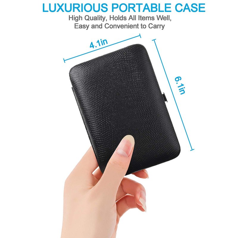 - PORTABLE AND LIGHTWEIGHT: The nail clippers set comes with a luxurious portable leather case, it is very lightweight, can fit into any handbags or shoulder bags, a perfect partner in your travels and also everyday life.