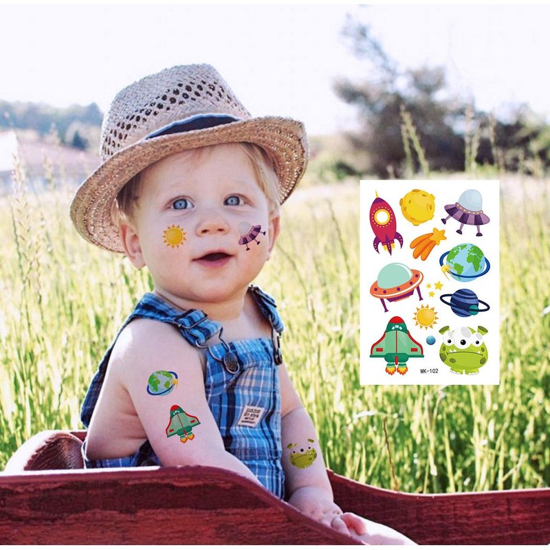 - Package of 24 Outer Space themed temporary tattoos (Astronaut, Planets, Spaceship, Rocket and so on).