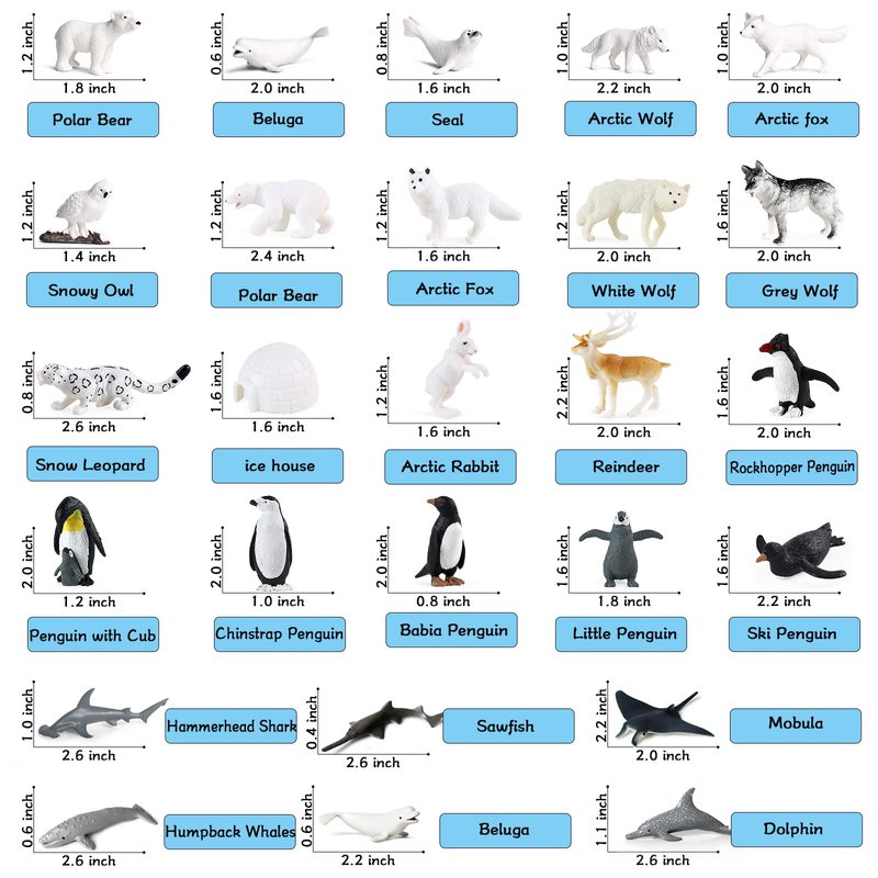 26PCS Mini Sea Animal Figures, Realistic Arctic Ocean Animals Figurines Plastic Ocean Miniature Toys Playset with Arctic Animals, Sharks, Reindeer etc. Easter Egg School Project Gift for Kids Toddlers