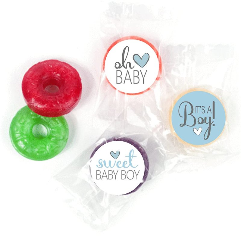 270 PCS Blue Baby Shower Stickers, 6 Design Self Adhesive Circle Label Stickers, Baby Shower Envelope Seals Candy Stickers,Baby Shower Party Chocolate Stickers,Candy Stickers.(015)